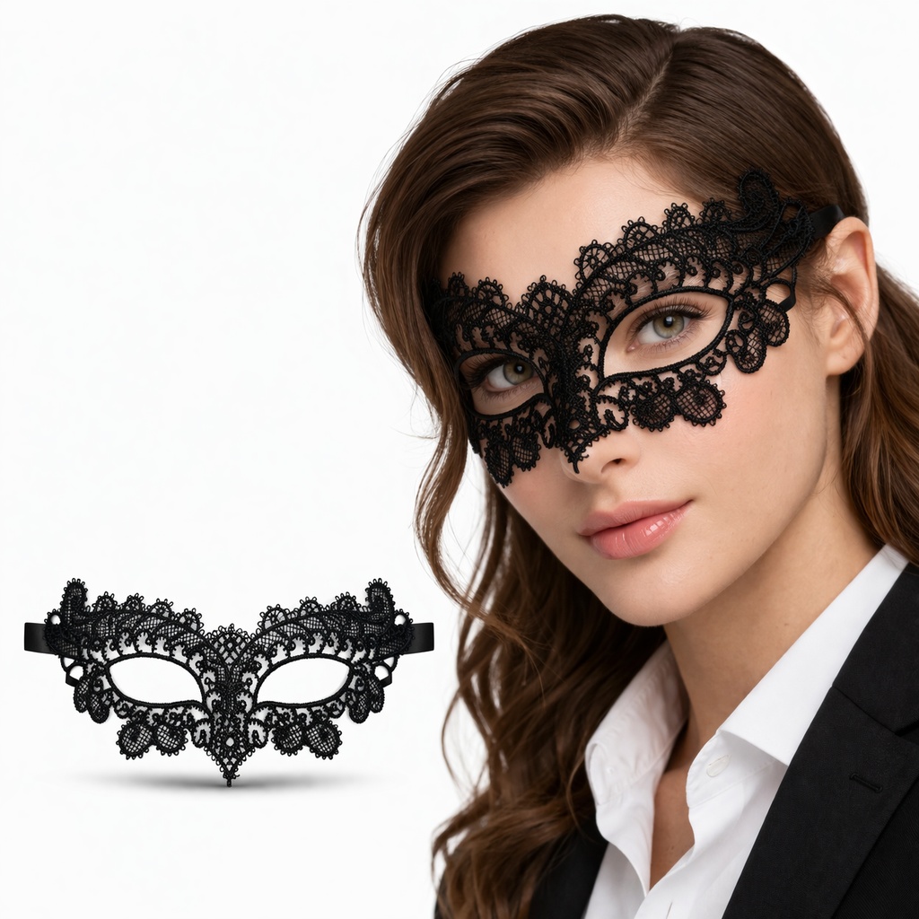 İnce işçilikle hazırlanmış dantel yapısı sayesinde hem hafif hem de konforlu kullanım sunar. Yüz hatlarını estetik şekilde ortaya çıkaran tasarımı ile zarif ve etkileyici bir görünüm sağlar.