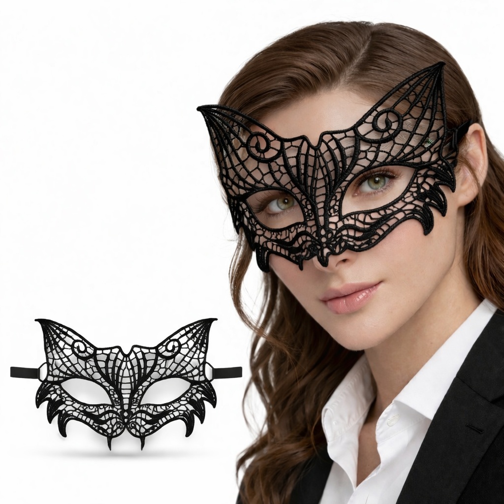 İnce işçilikle hazırlanmış dantel yapısı sayesinde hem hafif hem de konforlu kullanım sunar. Yüz hatlarını estetik şekilde ortaya çıkaran tasarımı ile zarif ve etkileyici bir görünüm sağlar.