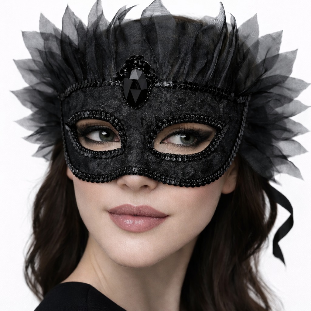 Gizemli ve zarif bir görünüm için tasarlanan siyah taşlı tüllü Venedik maskesi, özel davetlerinizde stilinizi ön plana çıkarır. Ön kısmındaki büyük taş detayı ve etrafındaki yoğun tül saçak tasarımı ile premium bir görünüm sunar.