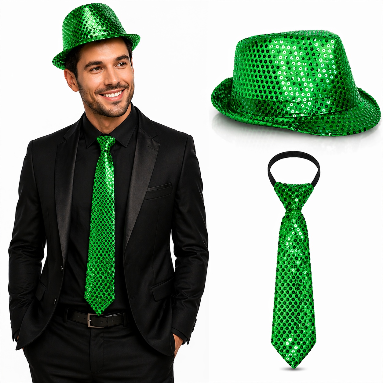 Partilerin en dikkat çekici kombini olmaya hazır olun! Yeşil Payetli Şapka ve Kravat Seti, ışıltılı ve göz alıcı tasarımıyla eğlence, sahne ve özel günlerde tarzınızı bir adım öne çıkarır. Parlak payet kaplaması sayesinde ışık altında harika bir görünüm sunar ve bulunduğunuz ortamda tüm dikkatleri üzerinize toplamanızı sağlar.